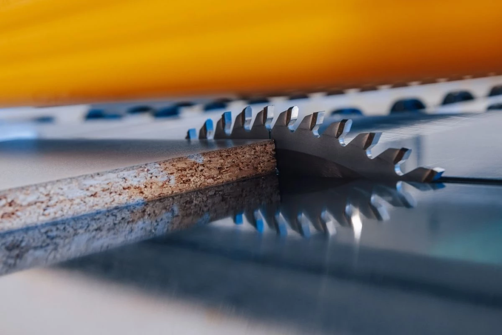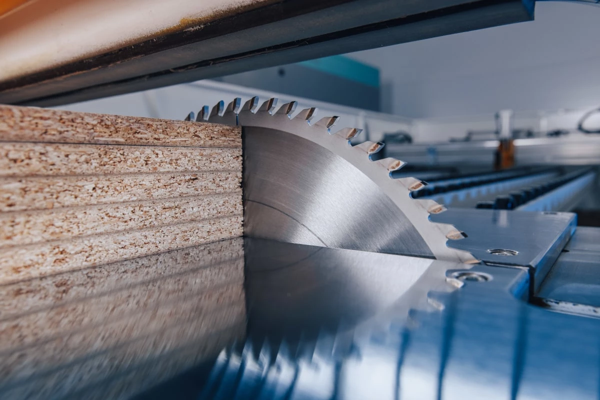 The machine is designed for cutting sheet materials such as chipboard, MDF and other wood-based panels.